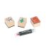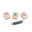 Le plus ? Le tampon encreur en forme de stylo permet aux petits artistes en herbe de ne pas (trop) se salir les doigts en colorant les tampons en vert ou en rouge.