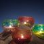 Avec ces photophores en verre aux nuances roses, vertes, jaunes et bleues, maisons et jardins se teintent d'une douce lumière poétique et chaleureuse. Ainsi, quand vient la nuit, à l'heure où la fête commence, la flamme fait vibrer l'éclat de chaque boule de verre pour créer une atmosphère pleine de magie.