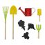 Contient : 1 chariot, 1 pelle, 1 ramasse-feuille, 1 petite pelle, 1 arrosoir, 1 fourche et 3 signets en bois.