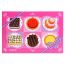 Ce coffret de pâtisserie est idéal pour préparer le thé entre amies. Au menu, six gourmandises appétissantes présentées sur de petits napperons en papier : une religieuse, une tarte au citron, une tarte aux fraises, un napolitain, un gâteau au chocolat et un pistachou. Ces accessoires en bois coloré sont parfaits pour agrémenter une dînette.