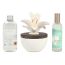 Contient : 1 diffuseur de parfum en céramique, 1 recharge parfumée Orchidée Blanche (100 ml) et 1 vaporisateur Orchidée Blanche (50 ml).