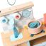 - Les accessoires en bois sont faciles à manipuler : les poignées, les portes, le four, les boutons et casseroles.