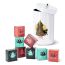 Pour régaler et surprendre chaque jour vos papilles et celles de vos convives, vous trouverez dans cette jolie boîte une palette variée de huit thés et infusions bio en sachets individuels. De délicieux mélanges composés d’ingrédients les plus fins et les plus aromatiques de petits producteurs du Sri Lanka. Ces thés biologiques, certifiés « Soil Association » sont issus de plantations « Ozone Friendly » (qui préservent la couche d’ozone).