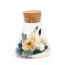 Cette fiole en verre dévoile un design rétro, inspiré par les cabinets de curiosité. Elle renferme une composition de plusieurs fleurs séchées dans des tons bleus et blancs : sétaire bleue, phalaris bleu ciel, immortelles blanches, hortensia bleu et de l'olivier.
