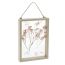Ce cadre en bois et en verre évoque les herbiers d'antan. Il dévoile une composition de plusieurs fleurs séchées : gypsophile rose, ruscus rose et immortelles jaunes.