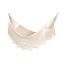 le hamac est fabriqué en toile de coton confortable ; ses franges en crochet garantissent une excellente répartition du poids pour un meilleur confort
