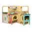 Contient : 1 cuisine à assembler, avec 1 four et ses plaques de cuisson, 1 évier, 1 placard de rangement, 1 étagère à épices, 2 fenêtres, 1 tableau noir, 2 casseroles, 1 cocotte, 1 assiette, 3 ustensiles de cuisine, 1 saladier, du sel et du poivre.