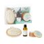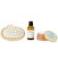 - 1 brosse de massage silhouette en bois naturel pour accompagner le gommage