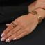- La manchette recouvre subtilement le poignet avec l'éclat doré du laiton.