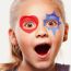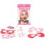 Contient 6 crayons de couleurs à maquillage, 2 pinceaux applicateurs, 6 pochoirs.