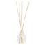 - Son petit vase en verre rempli de parfum accueille des tiges de rotin qui forment un bouquet élégant.