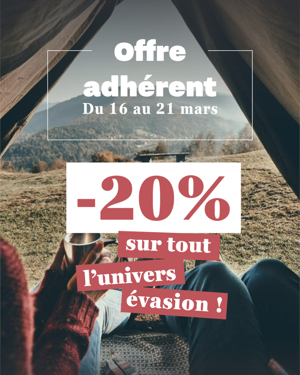 Offre adhérent en magasin : -20% sur tout l'univers évasion
