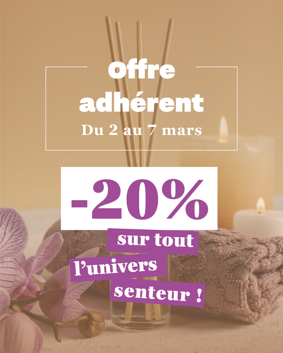 Du 02 au 07 Mars, Pour toute personne adhérente au programme de fidélité,  -20% sur l'univers senteur*.