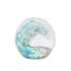 Elle est réalisée en verre et dévoile un motif coloré de vague bleue en son cœur.