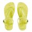 Cette paire de tongues arbore une belle couleur verte estivale. Elle a été réalisée à 50% environ à partir de matières recyclées. Ces tongues ont été fabriquées par des Brésiliens qui ont inventé les premières tongues en caoutchouc vulcanisé, très souple.